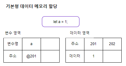 a라는 변수가 저장되는 변수 영역이 따로 있고, a에 대한 데이터가 저장되는 데이터 영역이 따로 있다.
